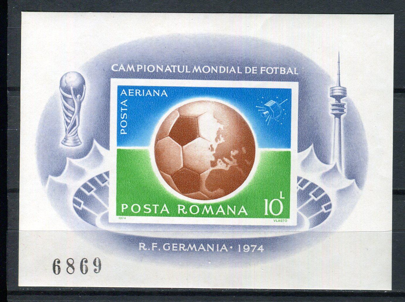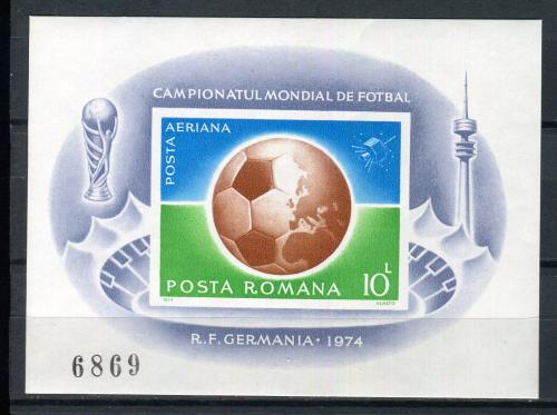 Почтовые марки. Румыния, 1974 г. Бл.115. Футбол. Mi 85 е.