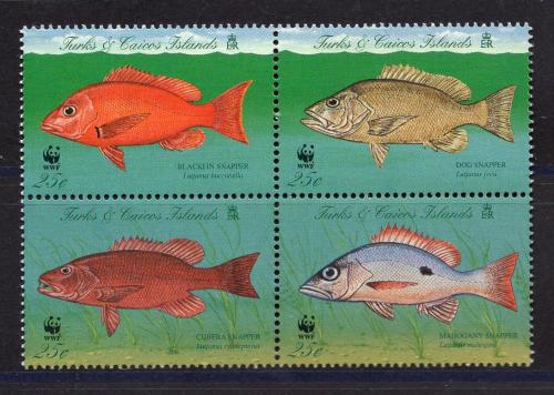 Почтовые марки. Острова Теркс и Кайкос. 1998г. WWF. Рыбы. №1404-1407. В сцепке.