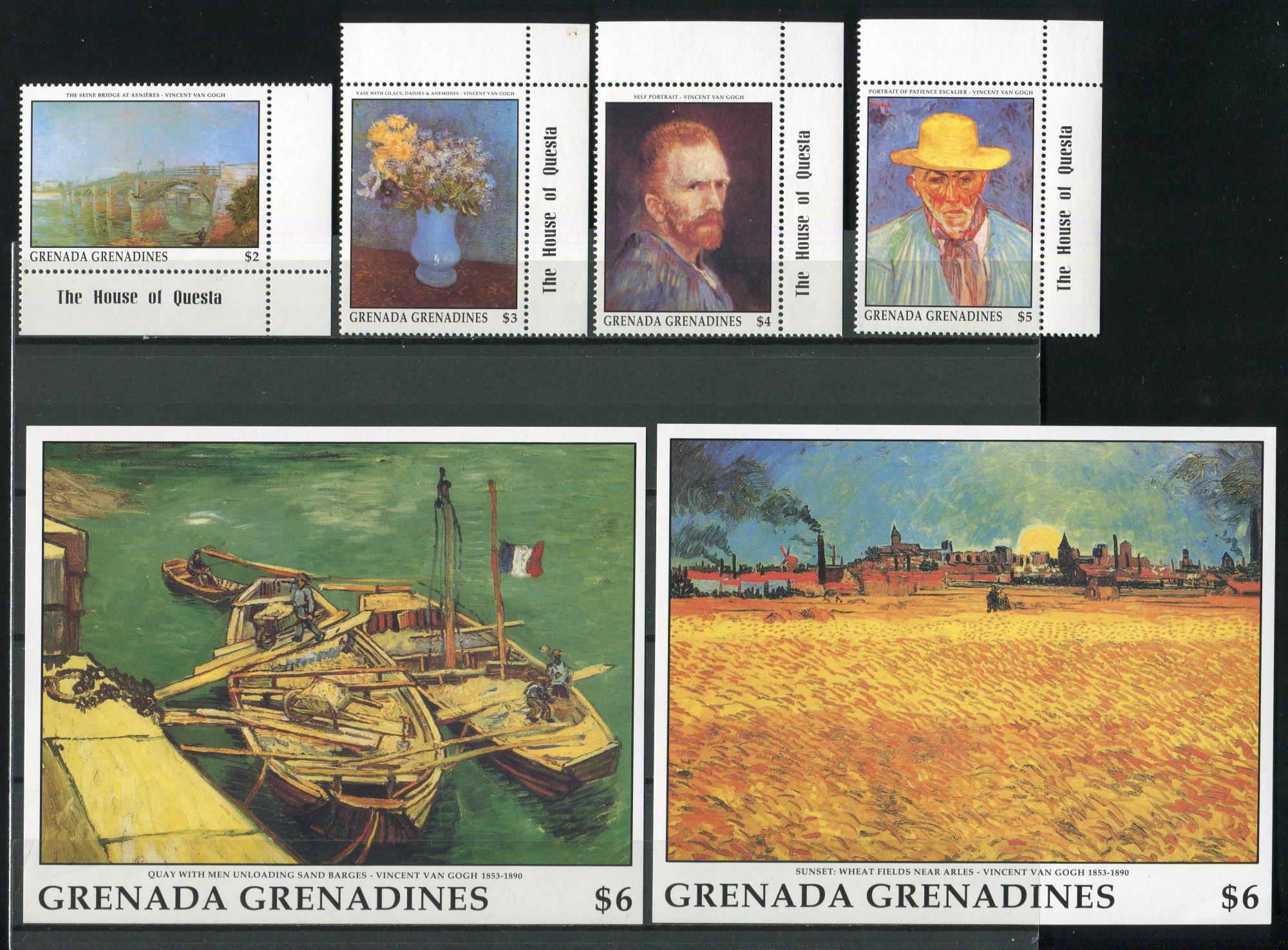 Почтовые марки. Гренада и Гренадины, 1991 г. Винсент ван Гог. Mi.No. 1462 - 1473, Бл. 227-229. Комплект. (Mi 38,50 €)