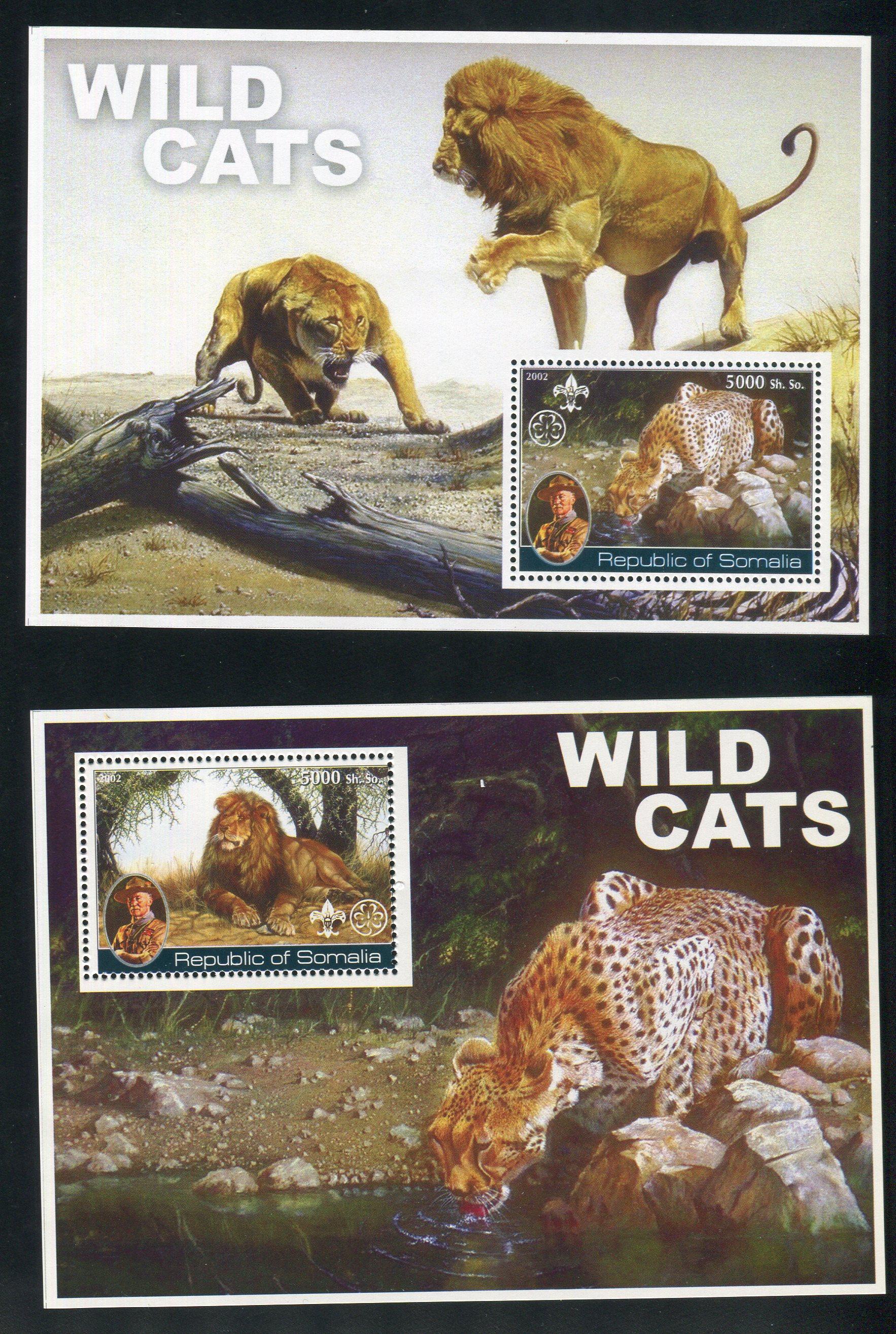 Почтовые марки. Сомали, 2002 г. Дикие кошки. Некаталог.