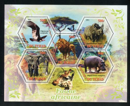 Почтовые марки. Чад, 2011 г. Некаталог. Хищные птицы, львы, слоны и др. животные.