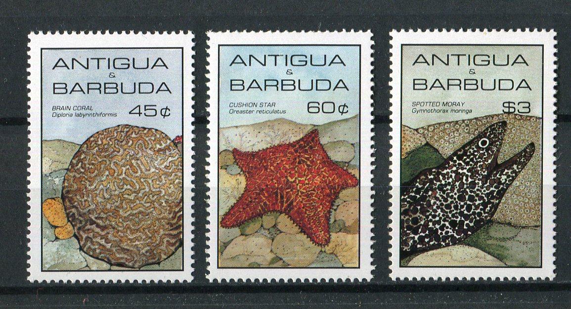 Почтовые марки. Антигуа и Барбуда, 1985 г. №881-883. (Без №880). Морская фауна (Mi: 14.50 Евро).