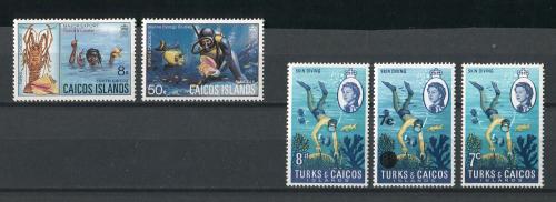 Почтовые марки. Теркс и Кайкос, 1967-1983. №15, 19, 206, 229, 265. Дайверы. Надп.