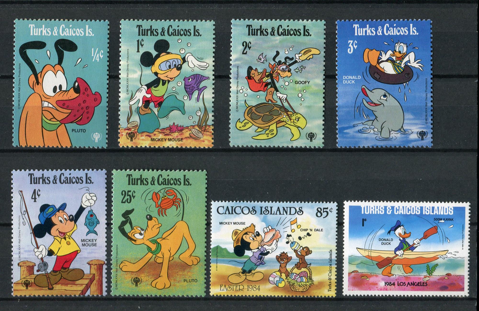 Почтовые марки. Тёркс и Кайкос, 1979-1984 г. №464-472 etc. Персонажи мультфильмов Диснея.