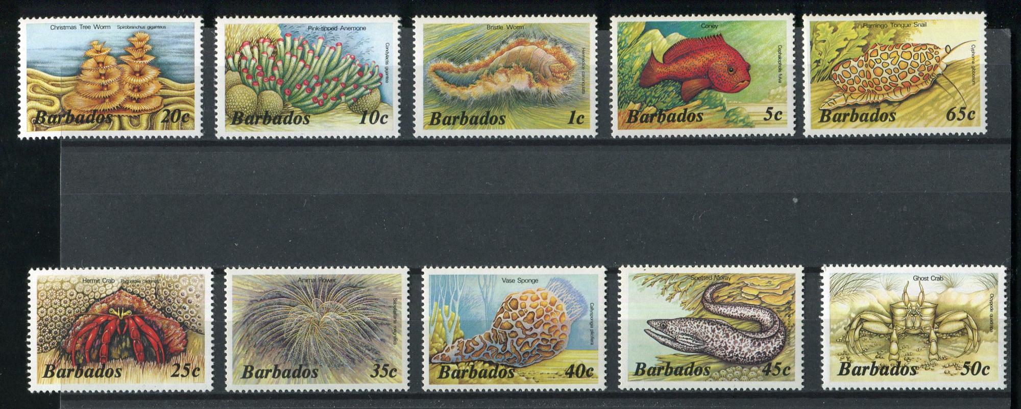 Почтовые марки. Барбадос, 1985 г. №617, 619-627. Стандарт. Морские животные (некомплект.)