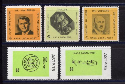 Почтовые марки. США. 1971-1973гг. Космос. Вернер фон Браун. Локальная почта НАСА.