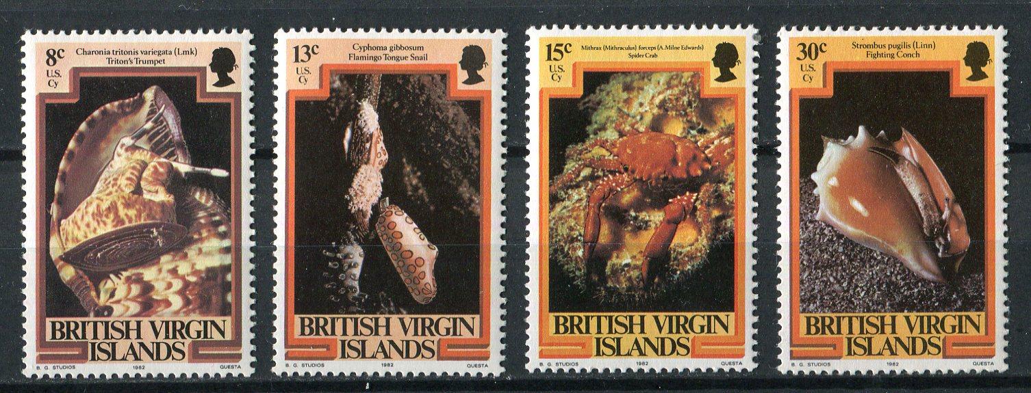 Почтовые марки. Виргинские о-ва, 1982 г. Ракушки. №370-377. (без 369, 375)