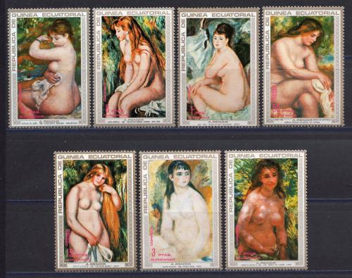 Почтовые марки. Экваториальная Гвинея. 1973г. Живопись. Женщины. Ренуар. №208-214.