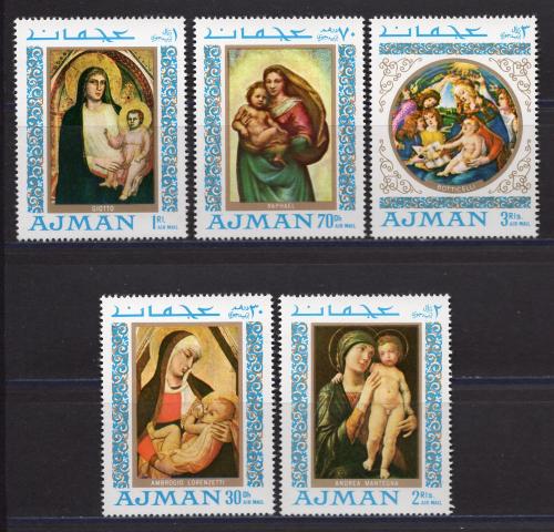 Почтовые марки. Аджман. 1968. Живопись. Рафаэль. № 327-331.