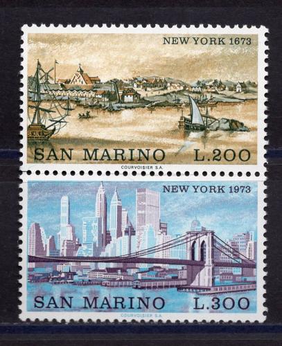 Почтовые марки. Сан-Марино. 1973 г. Нью-Йорк, "город контрастов". Сегодня и триста лет назад. №1025-1026. СЦ.