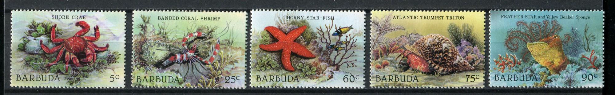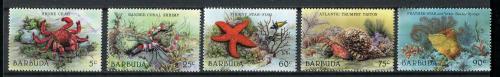Почтовые марки. Барбуда, 1973 г. Морские обитатели. №973, 976, 978-980.