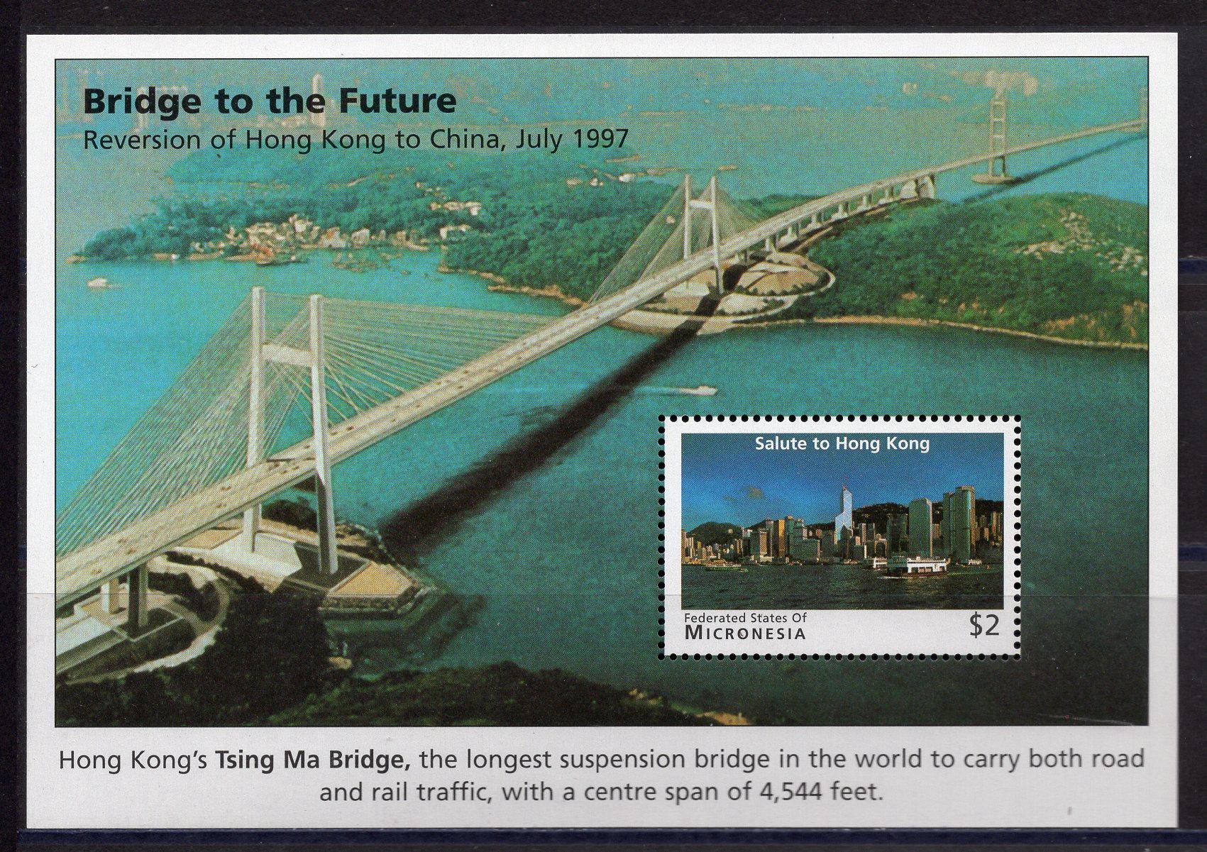 Почтовые марки. Микронезия. 1997 г. Возвращение Гонконга Китаю. Мосты. Блок №21.