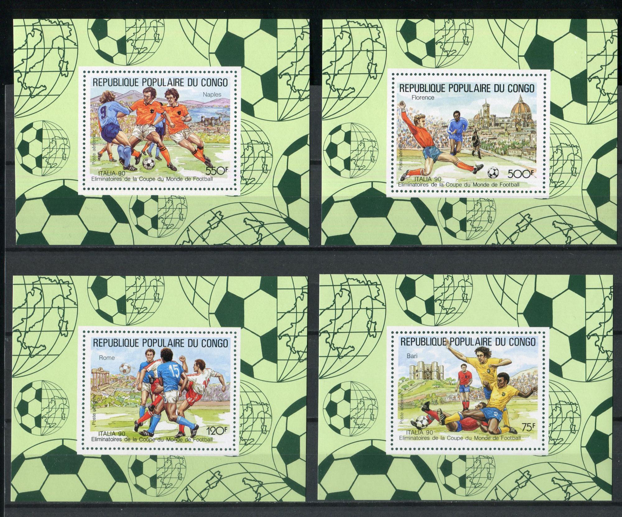Почтовые марки. Конго(Браззавиль), 1989 г. Футбол. MiNr. 1144 - 1147 Люкс-блоки.