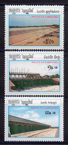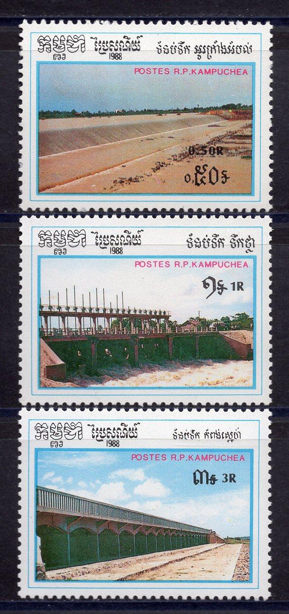 Почтовые марки. Камбоджа. 1988 г. Водные проекты. №919-921.