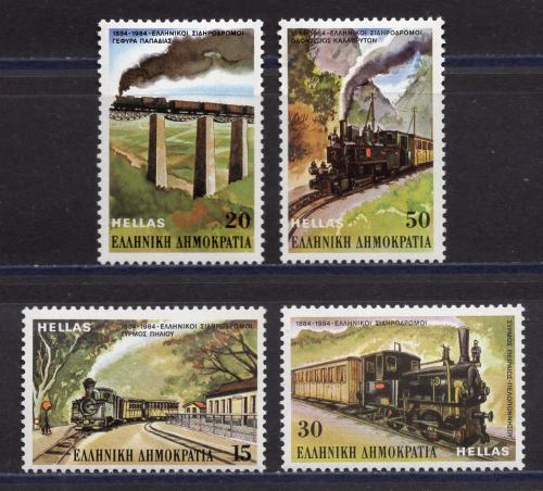 Почтовые марки. Греция. 1984 г. Греческие железные дороги. №1564-1567.