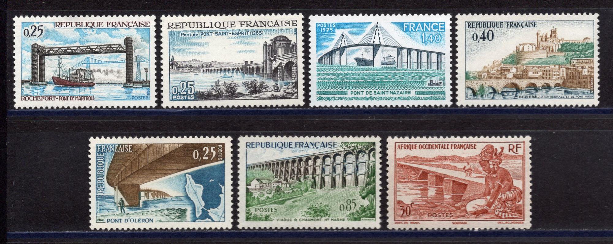 Почтовые марки. Франция. 1960-1975 г. Сборный лот. Мосты.