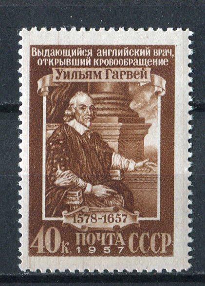 Почтовые марки. СССР, 1957г. №2004. Уильям Гарвей.