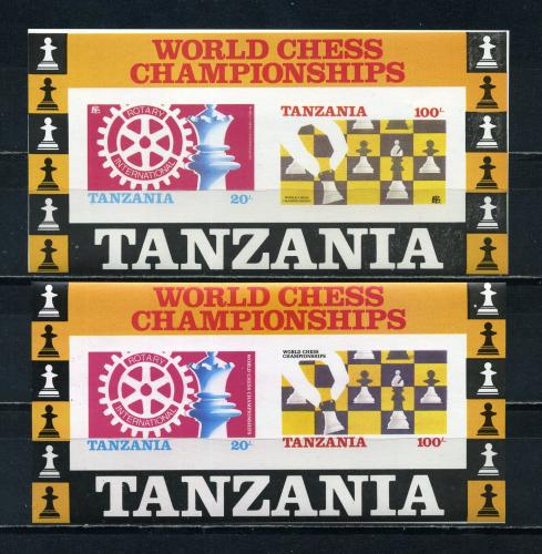 Почтовые марки. Танзания. 1986г. Шахматы. Блок №54 +разновид. Беззубц.