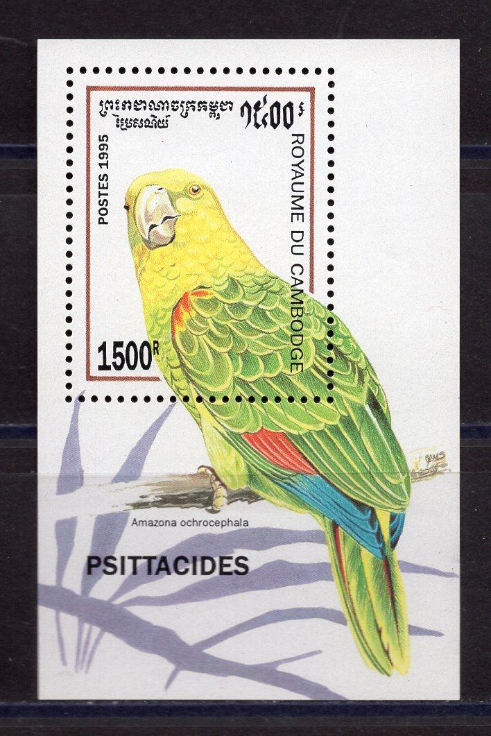 Почтовые марки. Камбоджа. 1995г. Попугай. Блок №213.