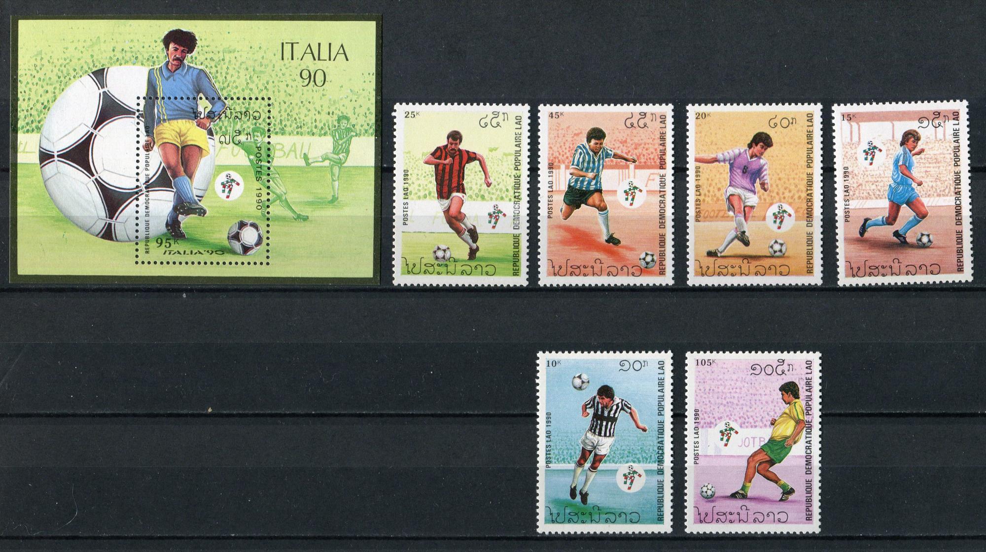 Почтовые марки. Лаос, 1990 г. Футбол. MiNr. 1182 - 1187, Бл. 130.