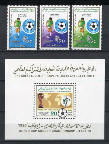 Почтовые марки. Ливия, 1990 г. Футбол. MiNr. 1846 - 1848, Бл. 121. Mi 20.50 €