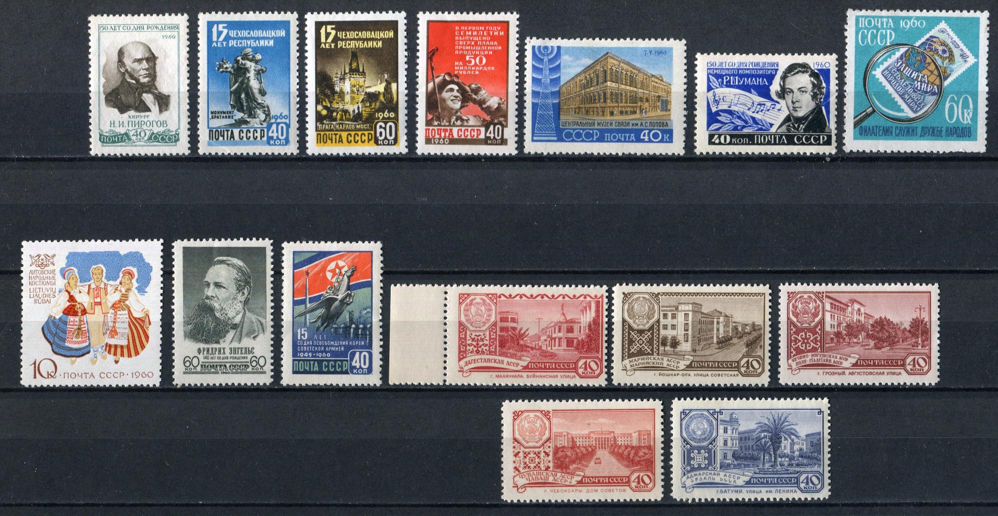 Почтовые марки. СССР, 1960 г. №2504, 2506-2507., 2418-22, 2424-2425, 2502, 2427, 2430-31, 2433. Сборный лот.