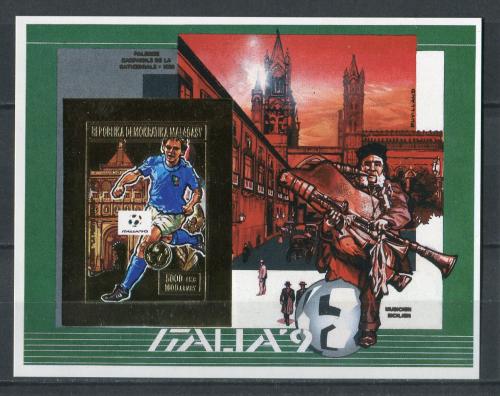 Почтовые марки. Мадагаскар, 1989 г. Чемпионат мира по футболу 1990 года. Бл. 123 B. Беззуб. Фольга, золото. Mi 20,00 €