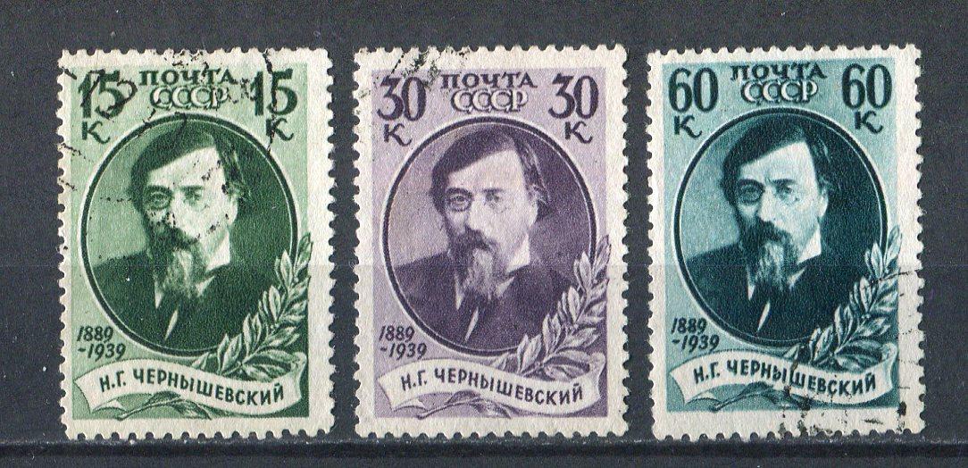 Почтовые марки. СССР, 1939 г. №717, 718, 719. Портрет Н. Г. Чернышевского