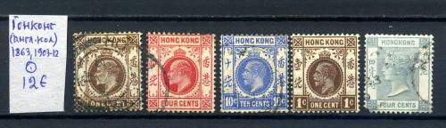 Почтовые марки.Гонконг (Английская колония). 1863, 1903-1912гг.