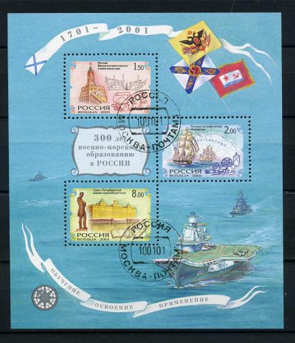 Почтовый блок. Россия 2001 г. 300 лет военно-морскому образованию в России. № 650-652 Бл.33.