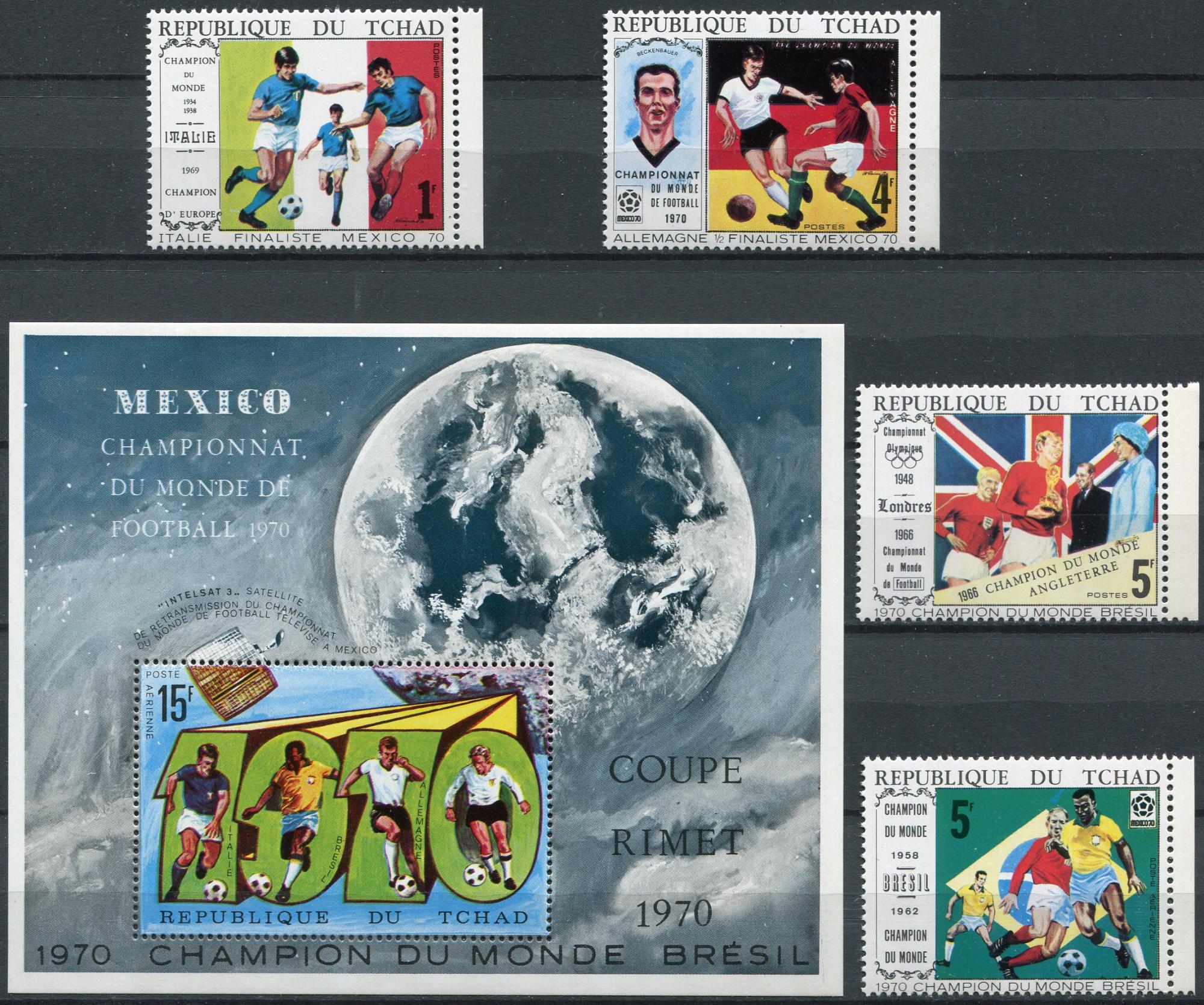 Почтовые марки. Чад. 1970 г. № 309-312 + Бл. 9. Футбол ЧМ.
