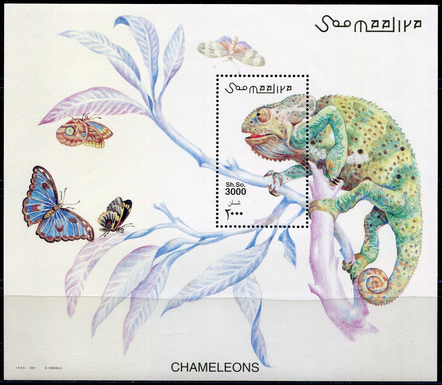 Почтовые марки. Сомали. 2001г. Хамелеон. Блок №78.