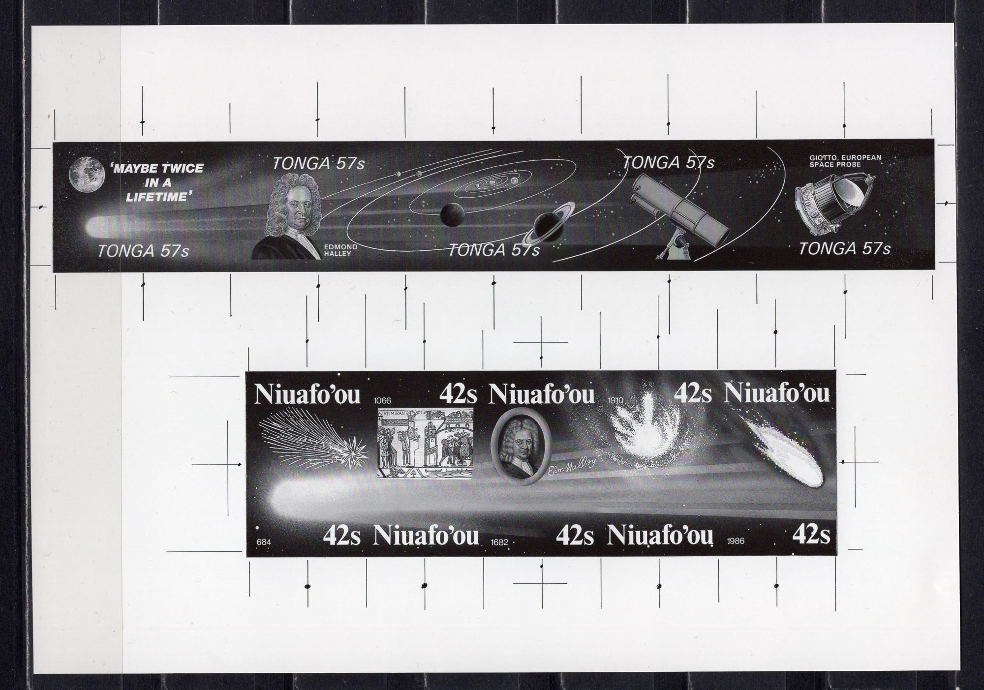 Почтовые марки. Тонга. Ниуафо'оу. 1986г. Космос. Комета. №932-936.70-74. Чернодрук. ПРОБА.
