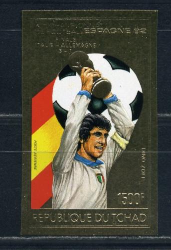 Почтовые марки. Чад. 1982г. Футбол. Фольга. Золото. №942в. Беззубц. (Mi: 40.00 Евро)