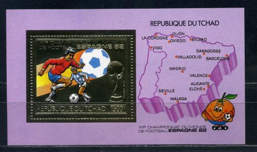 Почтовые марки. Чад. 1982г. Футбол. Фольга. Золото. Блок №87. (Mi: 42.00 Евро)