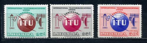 Почтовые марки. Либерия. 1965г. 100-летие ITU. №639-641.