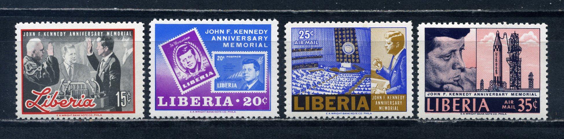 Почтовые марки. Либерия. 1966г. Памяти Джона Кеннеди. №662-665.