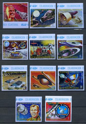 Почтовые марки. Экваториальная Гвинея 1975г. Космос. СССР-США. №А587в-А597в. Беззубц.