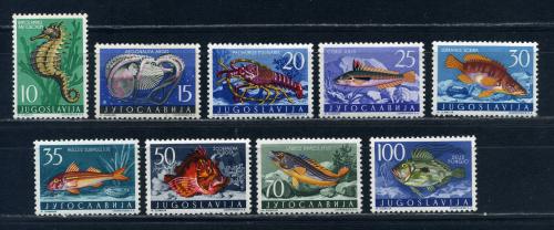Почтовые марки. Югославия. 1956г. Рыбы. №795-803.