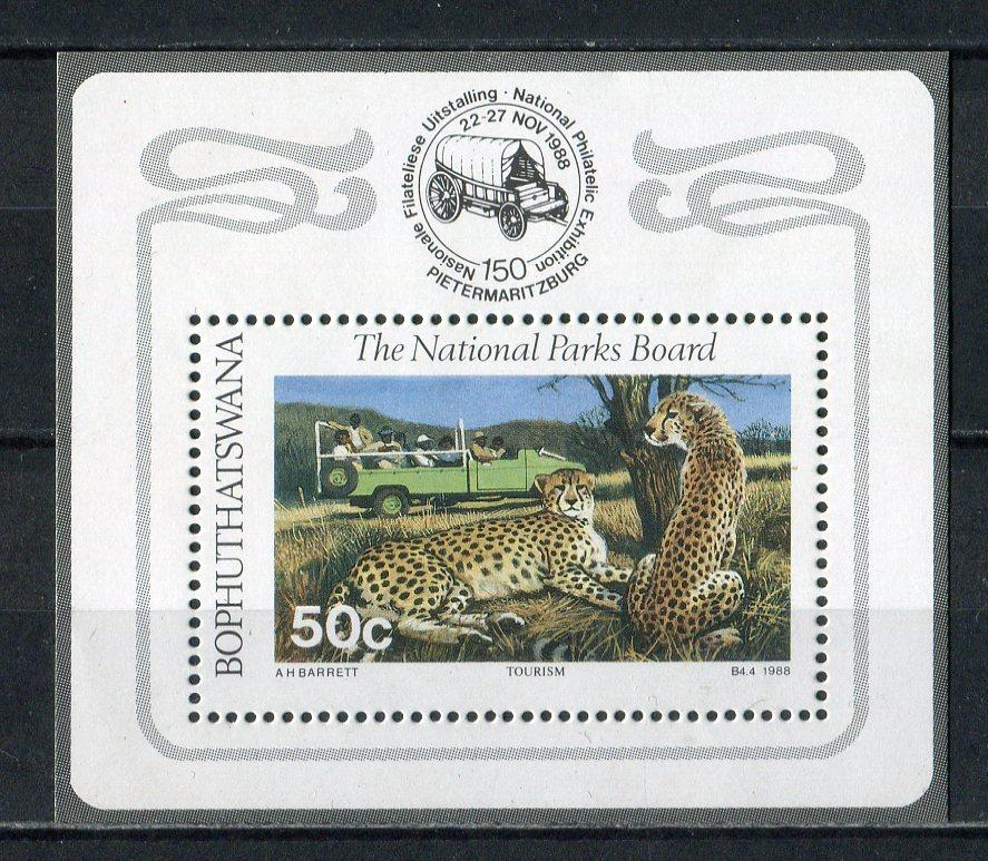 Почтовые марки. Бопутатсвана, 1988 г. Бл. 3. Леопарды ждут туристов.