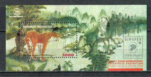 Почтовые марки. Индонезия, 1998 г. Бл. 131. Тигры.