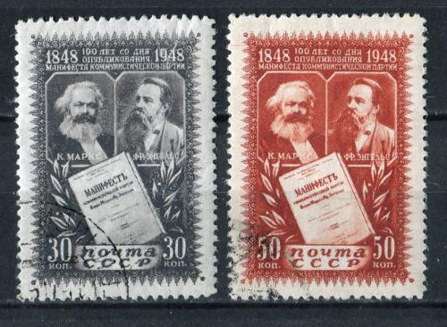 Почтовые марки. СССР, 1948 г. №1245-1246. Манифест компартии.