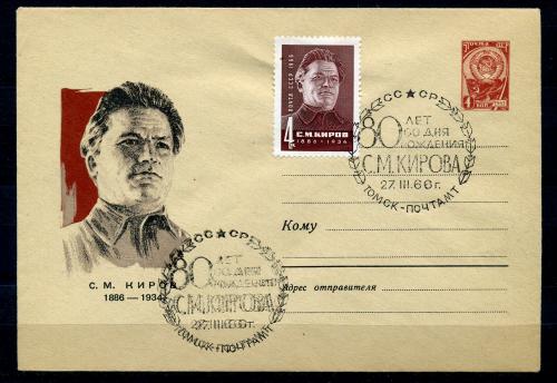 ХМК со СГ. СССР 1966 г. С.М. Киров. Марка 1966 г. № 3340. КО