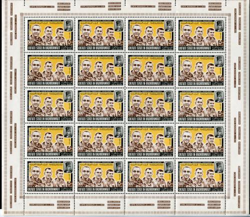 Почтовые марки. Аден. Qu'aiti St. 1967. Космос. Астронавты США. ЛИСТ. № 141 (Michel: 8.00 E x 20)