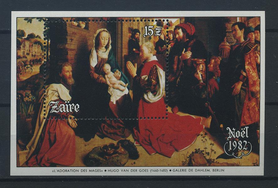 Почтовые марки. Заир. 1982г. Живопись. Рождество. Блок №45.