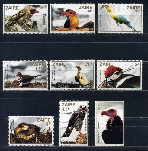 Почтовые марки. Заир. 1982г. Птицы. №792-800 (без 1 м.).