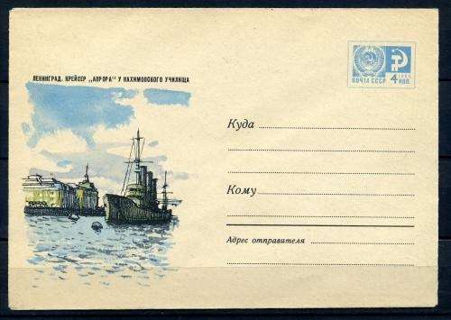 Почтовый конверт ХМК. СССР 1968 г. Ленинград. Крейсер "Аврора". (кат.250р.) КЗ