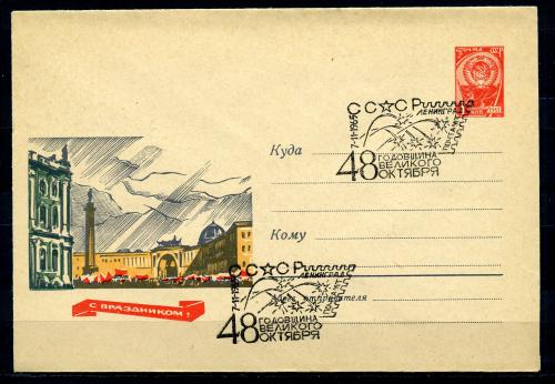 Почтовй конверт ХМК со СГ. СССР 1965г. С праздником! (кат.200р). СГ- 48-я годовщина Великого Октября. КО