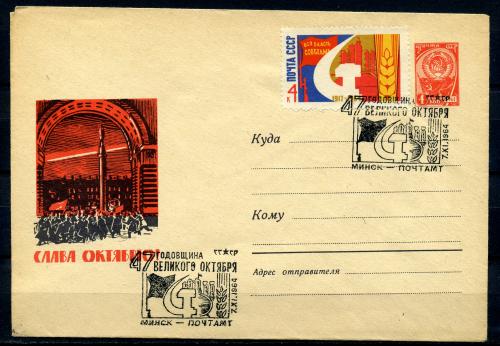Почтовый конверт ХМК с маркой и СГ. СССР 1964 г. 47-я годовщина Великого Октября. КО.