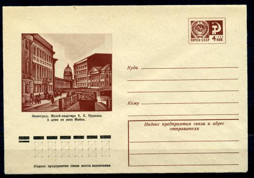 Почтовый конверт ХМК. СССР 1975 г. Ленинград. Музей-квартира А.С.Пушкина. КО